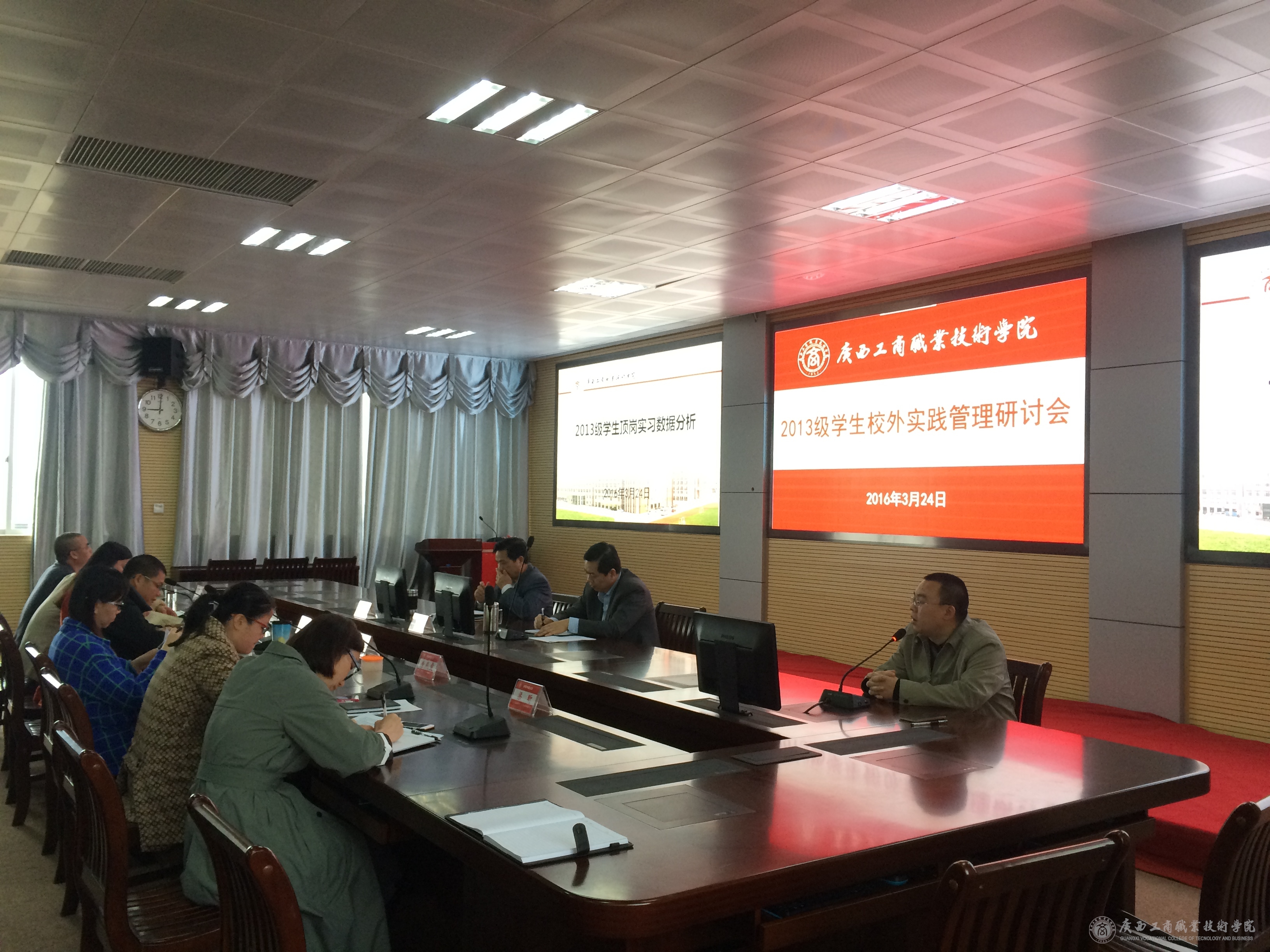 2016年3月24日上午,教務科研處處長韋勝強在校本部2119會議室主持召開了2013級學生校外實踐管理研討會,學院李維副院長、黨委學生工作部及各系部相關負責人,教務科研處有關人員出席了會議。