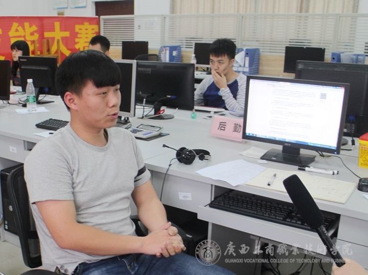 隨后,記者在對學院參賽選手賀炳煒、胡喬、龐鴻珍進行采訪。選手們表示對一個月以來日日夜夜的訓練的印象非常深刻,身為參賽隊員能堅持下來就是個非常大的挑戰。肩負著代表學院參賽的責任,獲得一等獎的同時,自己付出的汗水終于有了一個回報,一個月的努力沒有白費,沒有辜負學院、老師、同學們的期望,也得到大家更多的認可。