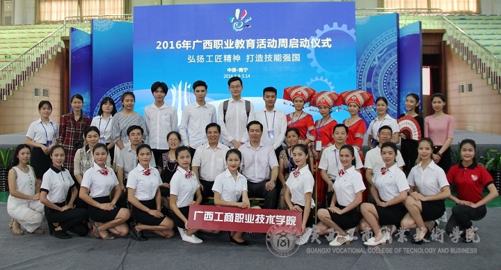 (我院參展團隊在2016年廣西職業教育活動周啟動儀式現場合影留念)