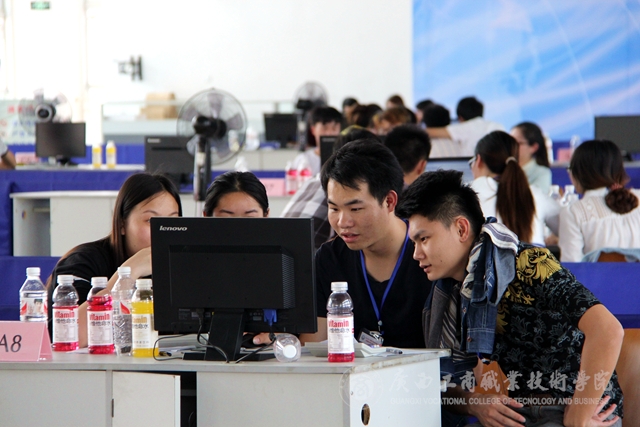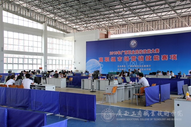 2015年4月25日早上9點,廣西職業院校技能大賽高職組市場營銷技能賽項在校本部文體館二樓緊張進行。