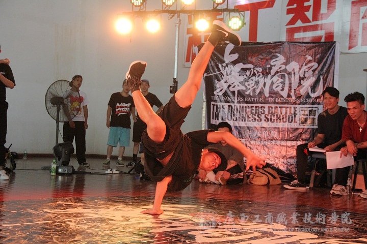 2016年5月14日14:00,我院本部文體館二樓舞臺上下人頭攢動、燈光璀璨,由我院共青團委員會主辦、院街舞社承辦的第二屆“舞戰商院”街舞大賽在此舉行。南寧各大高校街舞社紛紛前來參賽,并與同學們一同欣賞了此次比賽。本次大賽共有五個項目,以斗舞的形式進行,分別為:高校嘉賓賽(7 to smoke)、全部舞種賽(freestyle 3V3)、團體挑戰賽(breaking 5~7)、單人舞步賽(top rock 1V1)、單人技巧賽(power move 1V1)。