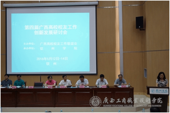 2016年5月13日,我院副廳級調研員黃永蓬率學院校友辦等三人出席在欽州學院召開的第四屆廣西高校校友工作創新發展研討會。