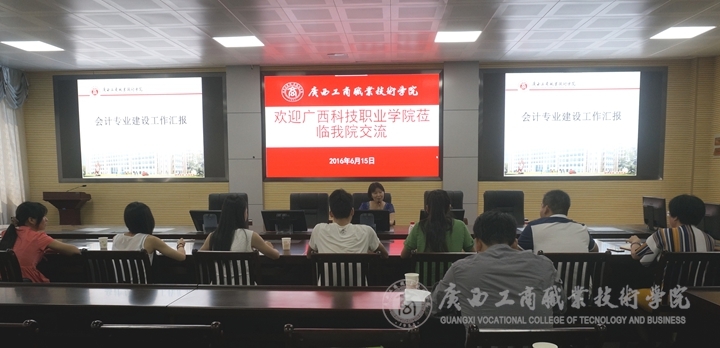 2016年6月15日上午,廣西科技職業學院院長助理吳先夏等一行11名教師到我院進行交流。學院領導、會計專業帶頭人、工商企業管理專業帶頭人、計算機專業帶頭人、物流專業帶頭人、各系教學秘書及教務科研處相關人員參加了交流活動。