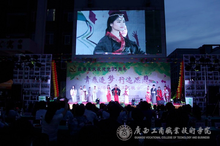 六月的天空流光溢彩,她孕育著無限的希望,也演繹著悲歡離合的故事。由廣西工商職業技術學院經管系團委承辦的2016年“青春逐夢,行遠思恩”畢業文藝晚會在我院校本部大屏幕下舉行。