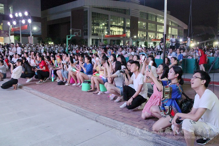 6月30號晚上七時,晚會準時開始,扣人心弦的歌聲,動魄帶感的歌舞串燒,詼諧幽默的情景劇串燒等精彩節目讓人目不暇接。其中歌曲《第一天》勾起觀眾無限的回憶,仿佛回到第一天師生在廣商院相遇,學生們青澀的笑臉還在眼前的場景。而歌舞串燒《blow》的表演者用他們蓬勃的青春活力,從校園中發現著美,創造著美,詮釋著對廣商院的依依不舍。尤其人氣爆棚的印度風情舞《鉆石情人》是獲得全場驚叫聲最多的節目,表演者男扮女裝,絢麗的服裝、妖嬈的舞姿,引起了臺下陣陣尖叫和轟動。