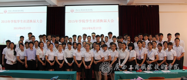2015年6月17日,我院2015年學生社團換屆大會于校本部教學樓2214報告廳隆重舉行,學院25個社團集體換屆儀式將在此次大會上舉行。學院團委副書記陳宇寧老師、學院團委陶曉斌老師、經管系方亮老師,學院學生社團聯合會全體成員以及學院25個社團主要干部出席了本次大會。