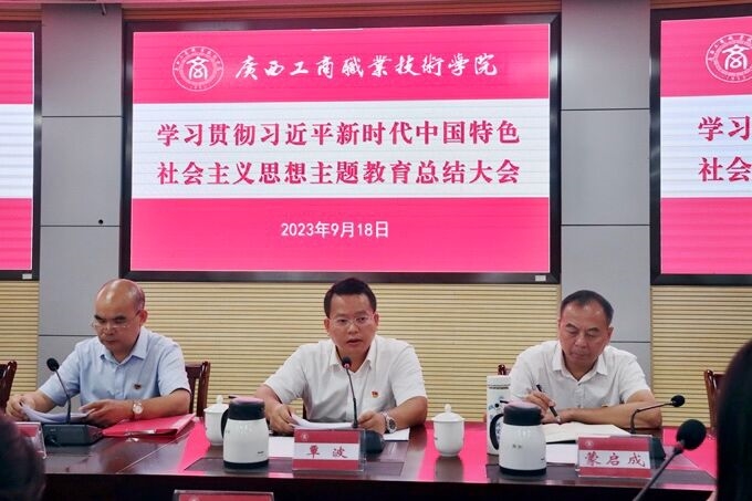 9月18日上午,廣西工商職業技術學院學習貫徹習近平新時代中國特色社會主義思想主題教育總結大會在鵬飛校區召開。會議認真學習貫徹中央、自治區主題教育第一批總結暨第二批部署會議精神,全面深化總結學院主題教育成果,深入分析查找不足,并對鞏固深化主題教育成果進行部署。學院黨委書記覃武云主持會議并代表學院黨委作主題教育總結報告,自治區黨委第十二巡回指導組成員覃波到會指導并講話。