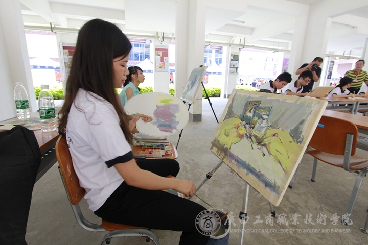 雙選會(huì)的另一些場(chǎng)面,則遠(yuǎn)沒(méi)有那么大的“競(jìng)爭(zhēng)”意味。在教學(xué)樓小舞臺(tái)處,禮儀風(fēng)采展演等精彩節(jié)目展示了商院學(xué)生扎實(shí)的藝文功底;更遠(yuǎn)處的“財(cái)信系畢業(yè)學(xué)生作品展”則現(xiàn)場(chǎng)展示了廣告設(shè)計(jì)與制作專(zhuān)業(yè)同學(xué)嫻熟而獨(dú)具創(chuàng)意的設(shè)計(jì)制作和室內(nèi)設(shè)計(jì)技術(shù)專(zhuān)業(yè)學(xué)生現(xiàn)場(chǎng)素描和水粉作畫(huà)的本領(lǐng);欣賞完技術(shù)的震撼與藝術(shù)的熏陶,接下來(lái),便是視覺(jué)、嗅覺(jué)、味覺(jué)齊上陣,在“營(yíng)養(yǎng)配餐作品展示、烘焙作品展示區(qū)”,香味瞬間撲鼻而來(lái),勾人食欲,一道道餐點(diǎn)出爐上桌,菜色豐富,營(yíng)養(yǎng)搭配均衡,口感極佳,廣受好評(píng)。該專(zhuān)業(yè)涉及的人群廣泛,可為兒童、孕婦、老人、運(yùn)動(dòng)員、高中生、特例病人等10種不同人群的營(yíng)養(yǎng)配餐,極大的吸引了企業(yè)家們的興趣。