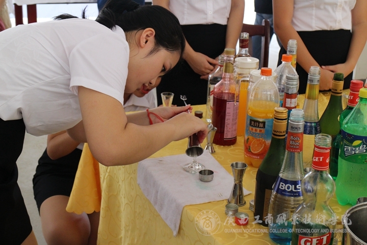 2015年6月27日9時(shí)許,廣西工商職業(yè)技術(shù)學(xué)院教學(xué)樓下面已是人潮涌動(dòng)。和往年的畢業(yè)生供需見(jiàn)面洽談會(huì)暨頂崗實(shí)習(xí)推介會(huì)一樣,仍是有多達(dá)近200家企業(yè)涌入該校,進(jìn)行人才選拔和招聘。不過(guò)今年該校倒是多了足以讓他們津津樂(lè)道的一道風(fēng)景——那就是,可以一邊吃著學(xué)院“烘焙作品展示區(qū)”提供的餅干和點(diǎn)心,一邊觀看小舞臺(tái)上的禮儀風(fēng)采展演,或者一邊欣賞旁邊“調(diào)酒技能展示區(qū)”的花樣調(diào)酒表演,順便請(qǐng)現(xiàn)場(chǎng)表演繪畫(huà)的同學(xué)畫(huà)張素描帶回去,真是一舉多得。不少企業(yè)表示,這樣輕松愉快的“嘉年華式”雙選會(huì),還是第一次遇見(jiàn)。