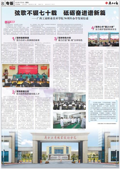 弦歌不輟,履踐致遠。學院實現辦學規模跨越式增長,綜合實力和辦學水平不斷提升,服務糧食安全和現代服務業發展的能力不斷提高,累計培養了10余萬高技能人才,為廣西經濟社會發展尤其是糧食和物資儲備事業發展作出了積極貢獻。