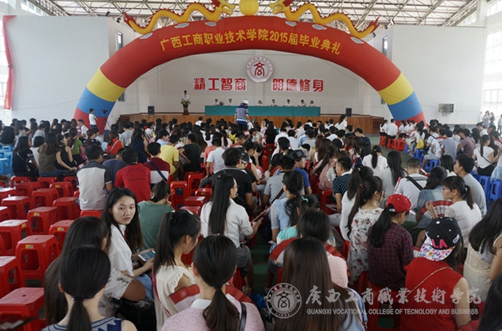 2015年6月27日下午15點,廣西工商職業技術學院2015屆畢業生典禮在我院校本部文體館二樓隆重舉行。學院領導班子全體成員及學院各部門主要負責人出席,2015屆各班畢業生及班主任參加。畢業典禮由李仕欽副院長主持。