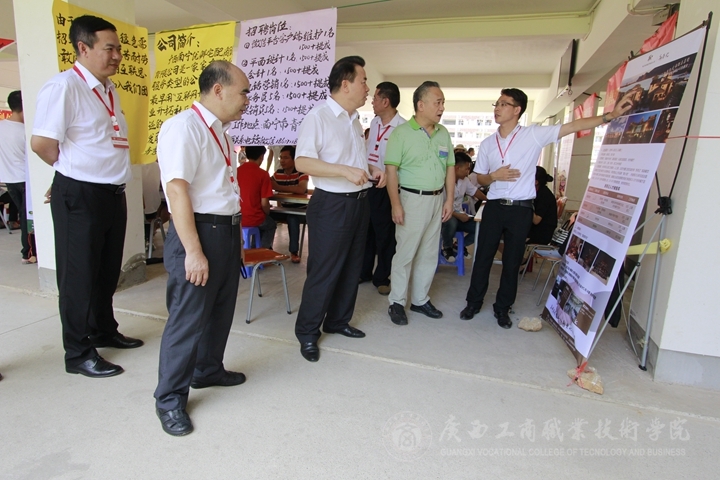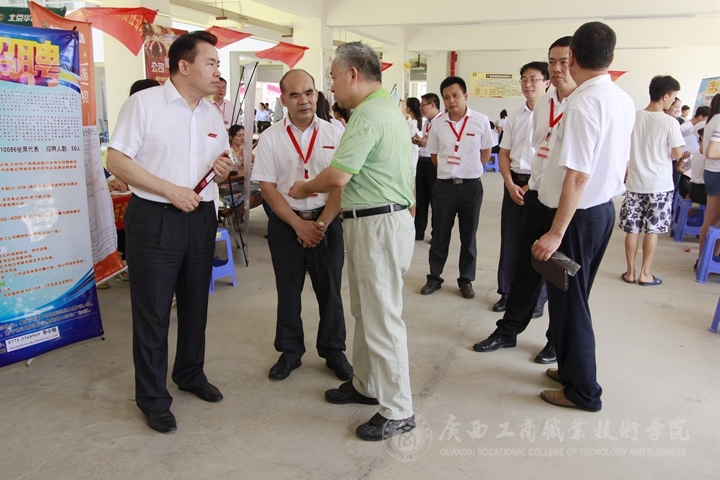 ??????? 2015年6月27日上午,廣西壯族自治區(qū)教育廳巡視員林寧蒞臨我院2015年畢業(yè)生供需見面洽談會(huì)暨頂崗實(shí)習(xí)企業(yè)推介會(huì)指導(dǎo)就業(yè)工作。我院黨委覃武云書記、陳杰院長(zhǎng)、李維副院長(zhǎng)等學(xué)院領(lǐng)導(dǎo)全程陪同參觀。