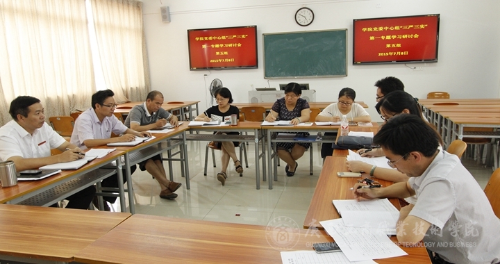 為了進一步加強學院黨員干部的思想道德建設,做好“三嚴三實”第一專題學習研討有關工作,我院中層以上領導干部在結束7月8日上午的“三嚴三實”第一專題集中學習研討后,于下午3點整,在教學樓分五組進行黨委理論學習中心組(擴大)學習會分組討論。