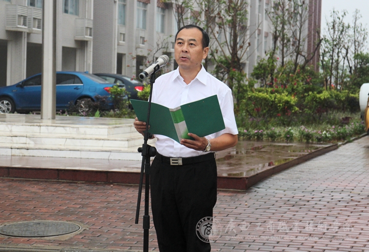 2015年8月31日早上,伴著蒙蒙細(xì)雨,我院2015-2016學(xué)年秋季學(xué)期首次升旗儀式在校本部田徑運(yùn)動(dòng)場(chǎng)隆重舉行。學(xué)院領(lǐng)導(dǎo),各部門、各單位中層以上領(lǐng)導(dǎo)、各系年級(jí)輔導(dǎo)員及2014 級(jí)全體學(xué)生冒雨參加了升旗儀式。