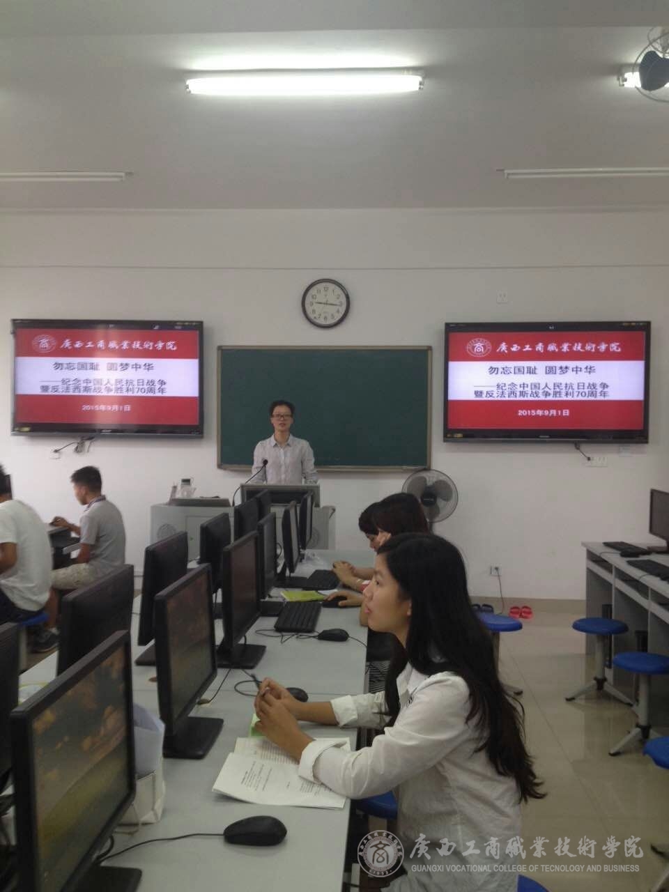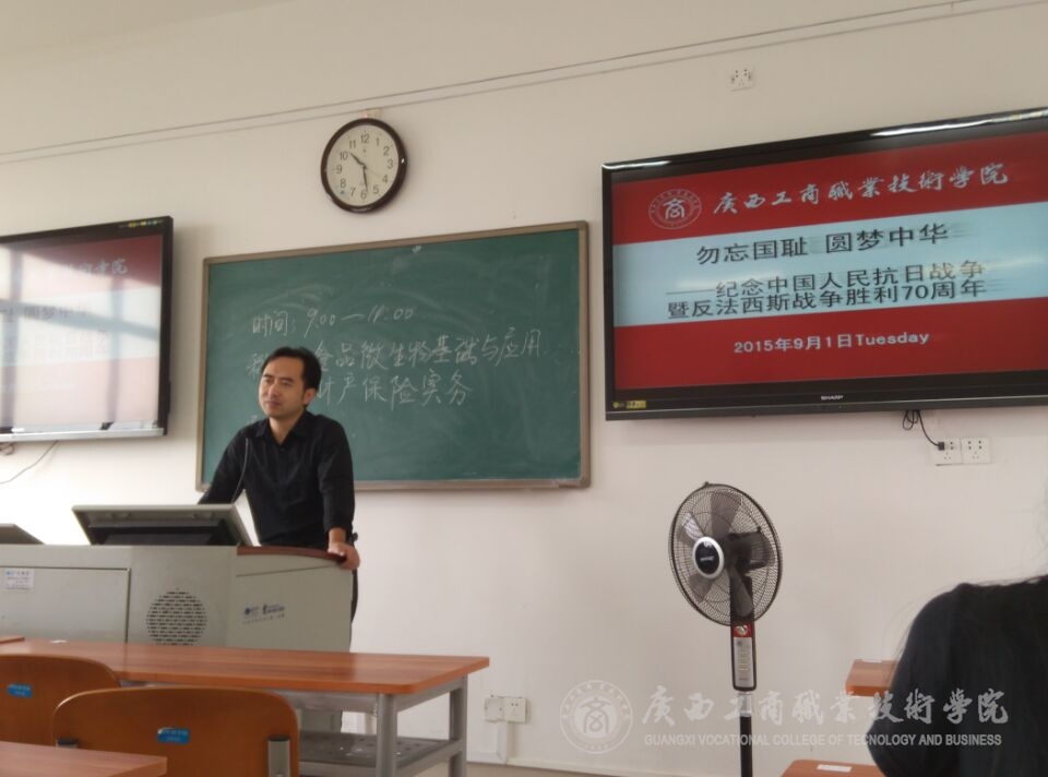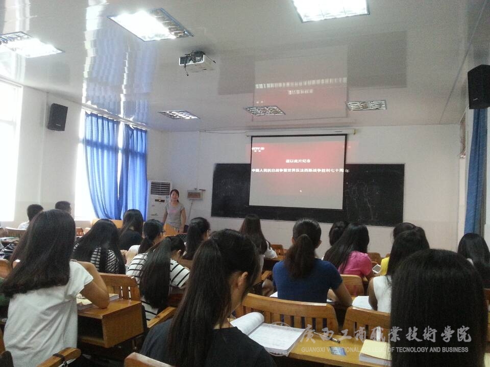 在開學的第一周中,我系教師在同學們的假期結束返校的第一課上,利用課前10分鐘或者課間10分鐘,為同學們簡單的講述了抗日戰爭的歷史以及抗戰勝利的偉大意義,并為同學們播放了由中央電視臺、軍事科學院政治部、江蘇省廣播電視總臺、陜西廣播電視臺等單位聯合拍攝的八集大型紀錄片《東方主戰場》的第一集《東方危急》的一小段,并讓同學們利用課余的時間,自行觀看這部紀錄片,了解歷史,勿忘國恥,要繼承和弘揚抗日民族統一戰線優良傳統。
