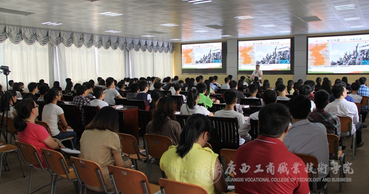 2015年9月14日下午,學院院長陳杰教授的第一堂思想政治理論課暨院長公開課在2214視頻會議室進行。學院黨委覃武云書記、蒙啟成副書記、李維副院長、韋勝強處長、各系部領導、各專業負責人以及社科部全體教師和營策1502、物流1503、工商1507班全體同學聆聽了本次公開課。