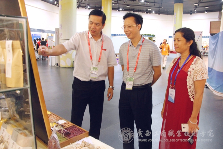 自治區糧食局領導重視東盟職教聯展工作,韋尚英處長(左三)親臨展位指導