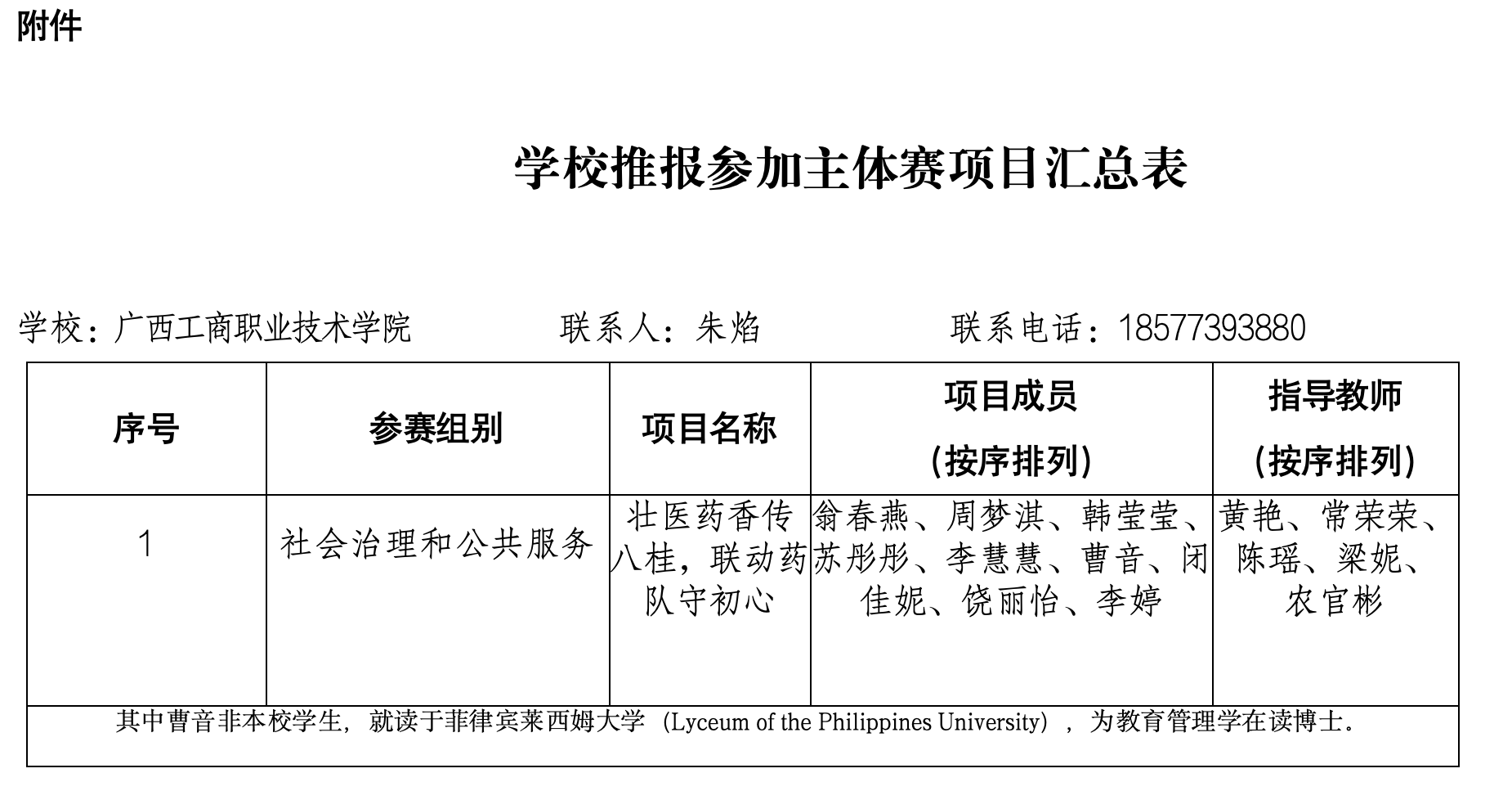 根據《關于第十四屆“挑戰杯”中國大學生創業計劃競賽的工作提示》,經團隊自主報名提交作品,學校團委、共青團區委組織專家評審,擬推薦《壯醫藥香傳八桂,聯動藥隊守初心》至國賽主體賽參加評審,現進行公示,詳見附件。