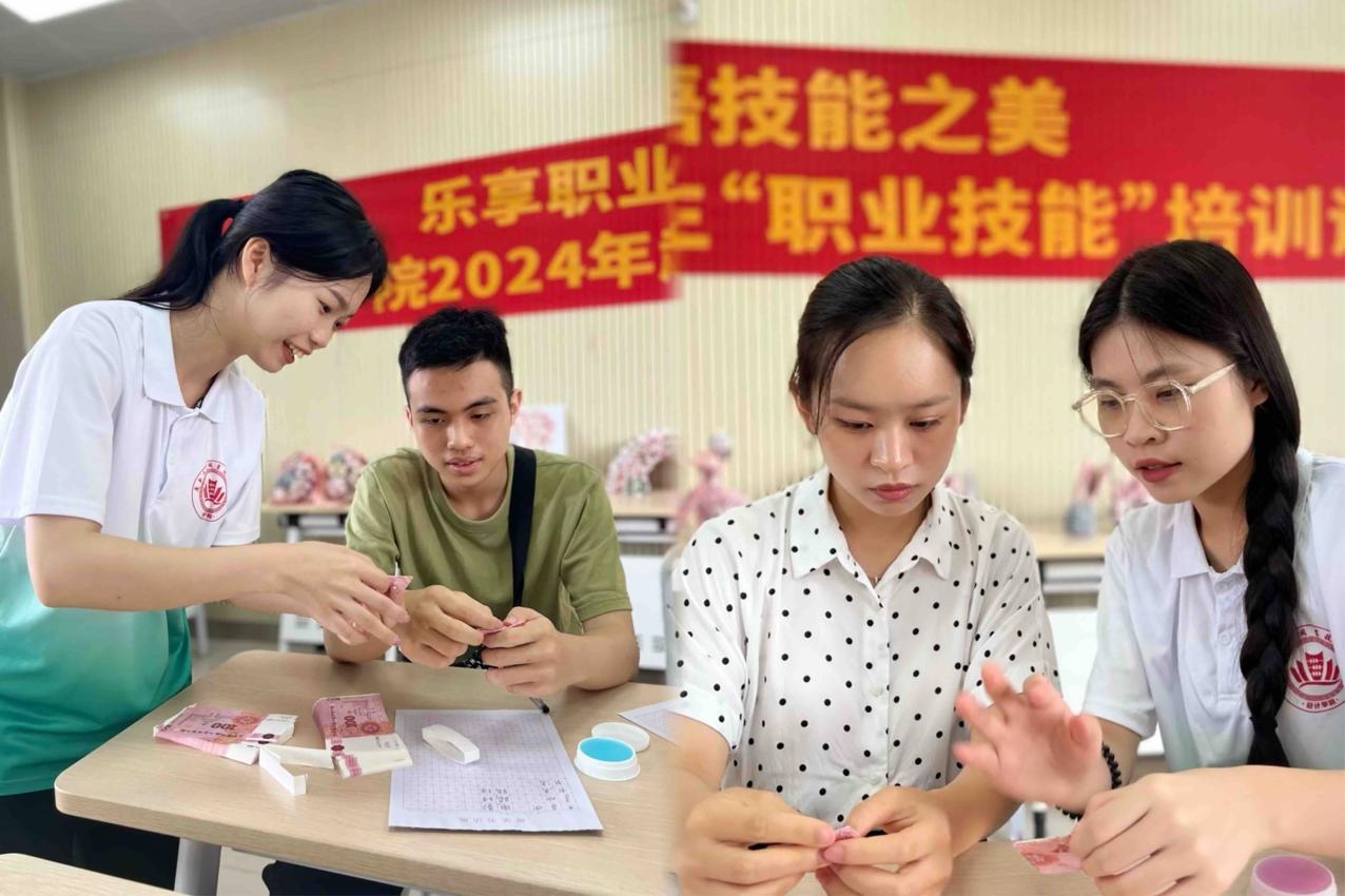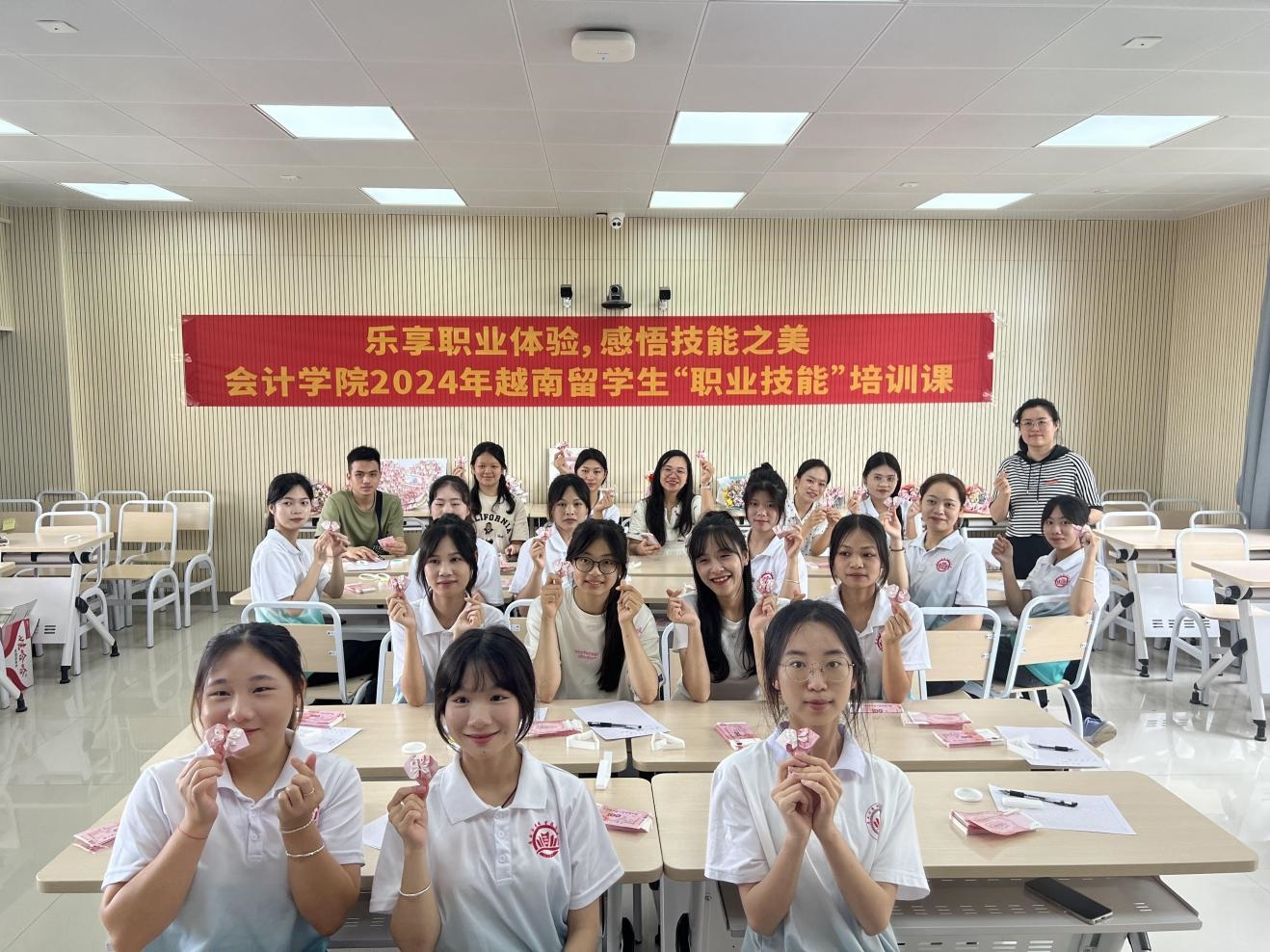 為貫徹落實“一帶一路”倡議,深入貫徹黨的二十大精神,更好地切實推進加強與東盟國家的教育交流,推進與東盟國家的職業(yè)教育合作,同時進一步推進學院國際交流相關(guān)工作。我院于6月26日在武鳴校區(qū)A2-305教室舉辦“樂享職業(yè)體驗,感悟技能之美”—— 2024年越南留學生混班研學培訓課程。本次活動旨在通過混班研學,讓越南留學生深入體驗中國會計職業(yè)的魅力,由我院鐘小林老師主講。