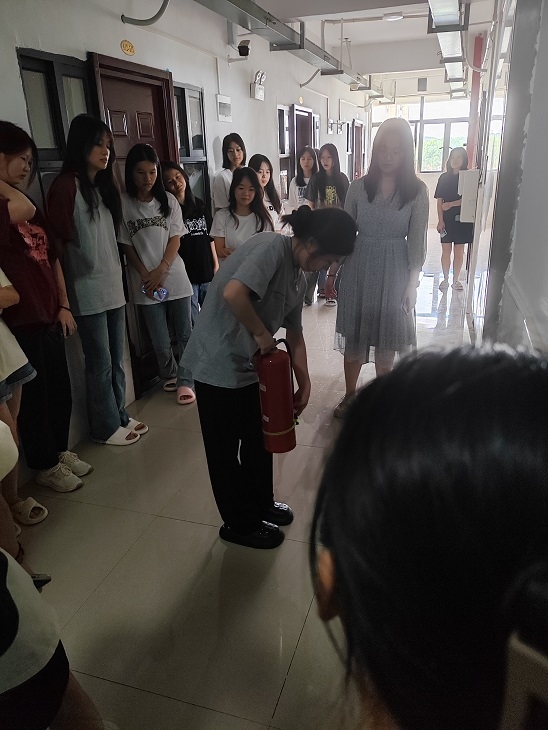 圖1:輔導員為學生講解如何正確第使用滅火器