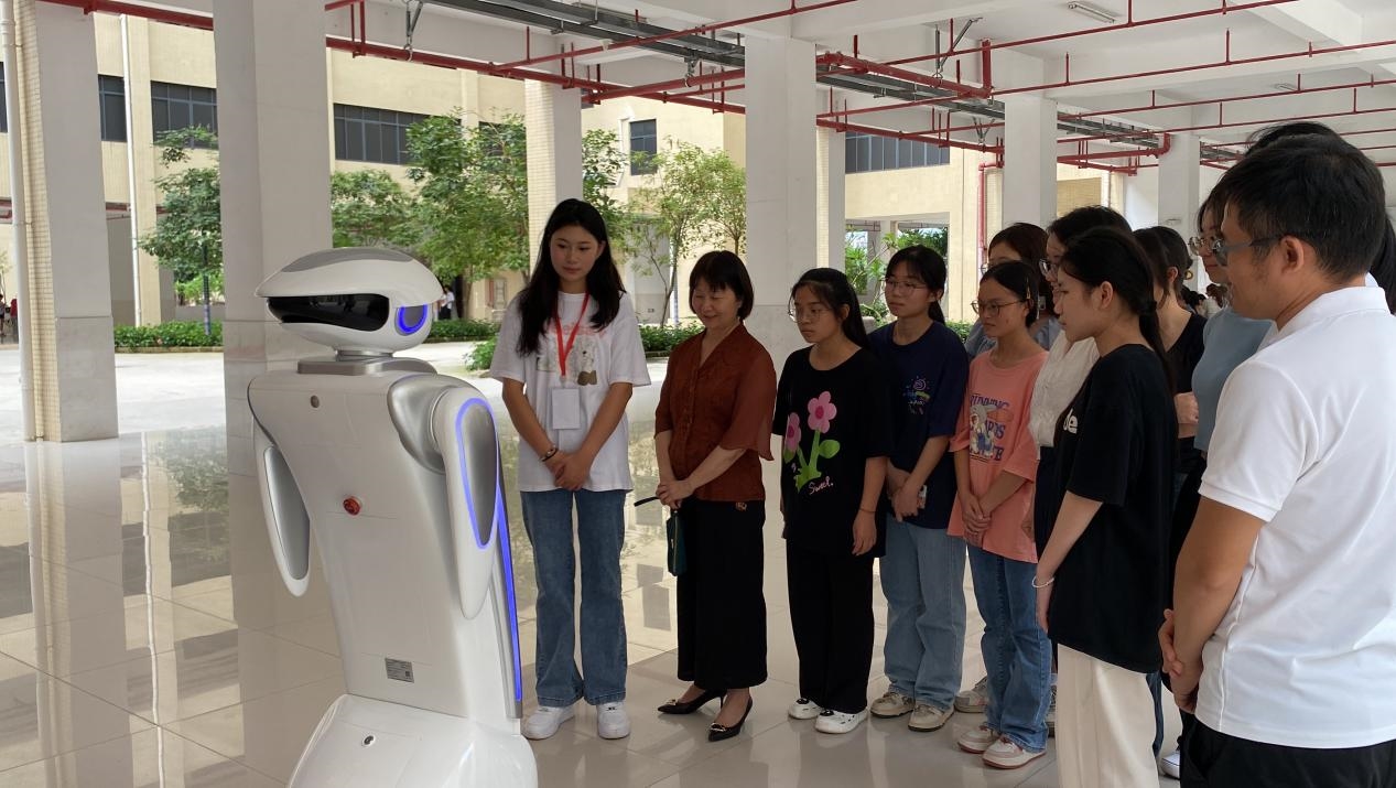 圖一:會計學(xué)院師生與智慧稅務(wù)實訓(xùn)中心智能機器人互動