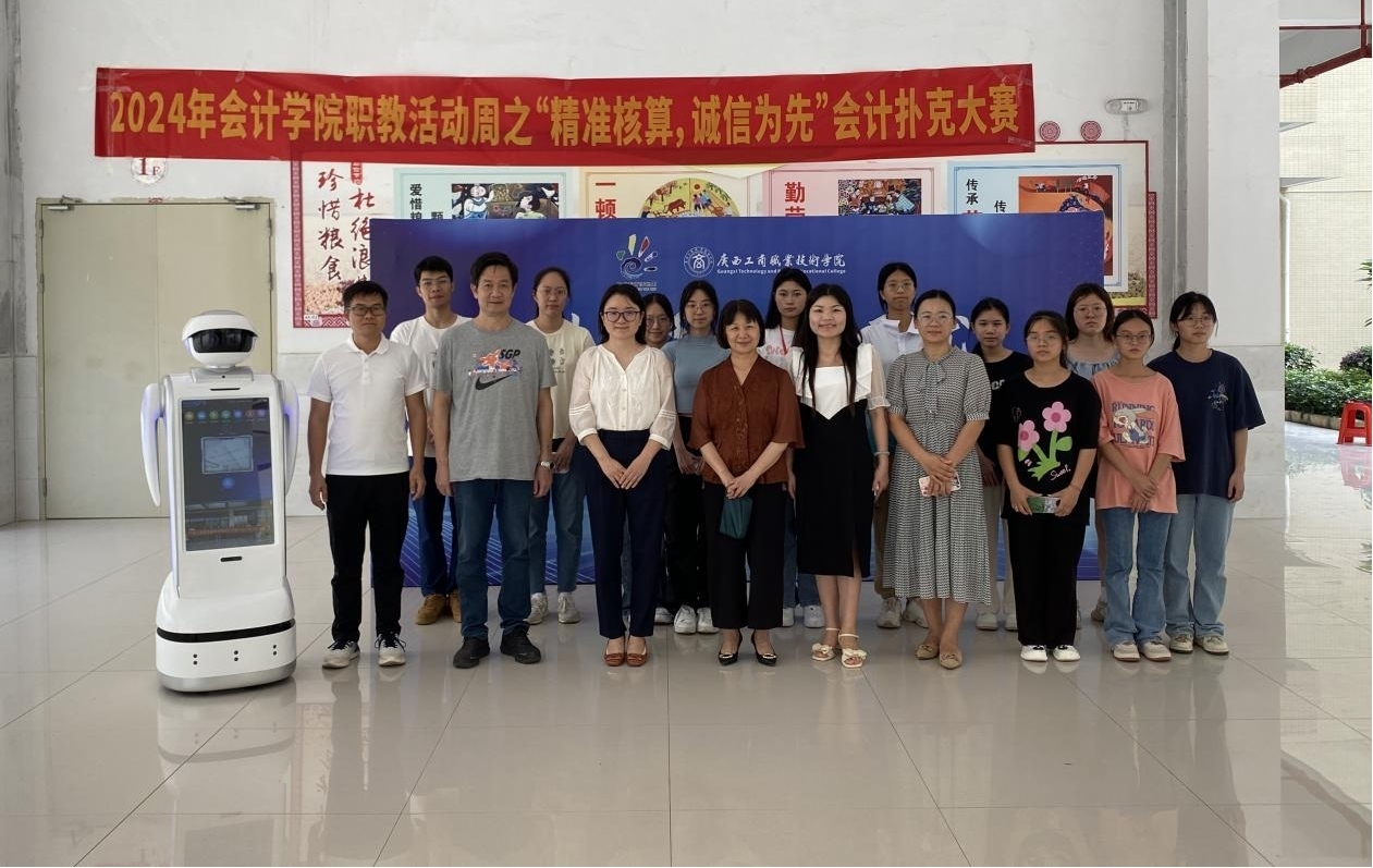 活動周中最引人注目的環(huán)節(jié)莫過于與智慧稅務(wù)實訓(xùn)中心的智能機器人進(jìn)行互動。這款機器人內(nèi)含會計知識問答功能,通過大屏顯示與智能語音交互技術(shù)自然迅速解答疑問。它借助數(shù)字化教學(xué)環(huán)境,直觀展示會計知識,引導(dǎo)學(xué)生創(chuàng)新思維和實踐。同學(xué)們通過模擬稅務(wù)場景,提升實操能力,深入理解稅務(wù)工作。????此外,同學(xué)們親身感受了人工智能在職業(yè)教育中的應(yīng)用,體驗到科技帶來的便捷和高效,對未來職場充滿期待。這一創(chuàng)新教學(xué)方式得到了學(xué)生的高度認(rèn)可,認(rèn)為它極大地深化了稅務(wù)實操的理解,為未來的職業(yè)發(fā)展奠定了堅實基礎(chǔ)。???“精準(zhǔn)核算,誠信為先”會計科目撲克比賽同樣吸引了眾多學(xué)生的目光,選手們分組競技,選手們在緊張刺激的比賽中需迅速分析局勢、制定戰(zhàn)略,靈活調(diào)整戰(zhàn)術(shù),充分展現(xiàn)了選手們的專業(yè)素養(yǎng)和心理素質(zhì)。