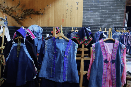 藍壯衣是“山水邊城,錦繡靖西”的文化瑰寶。傳統的藍衣壯服飾顏色較深,以黑藍色為主。過去藍衣壯的服飾都是由自家種的棉花來紡織,染色的原料主要是板藍根的莖部和葉子棉布放進中草藥“板藍根”的汁水里反復浸染,藍色一次次浸染中不斷加深?,F在的藍衣壯服飾在繼承傳統的基礎上進行了改良創新,改良后的藍衣壯服飾更貼近現代人的穿衣品位。