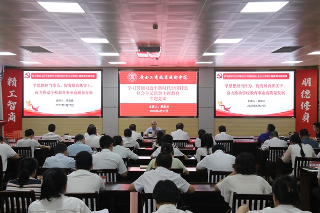 • 為深入開展學習貫徹習近平新時代中國特色社會主義思想主題教育,6月27日下午,學院黨委書記覃武云以“學思想擔當作為,促發展真抓實干,奮力推動學校教育事業高質量”為題講授專題黨課。自治區黨委第十二巡回指導...