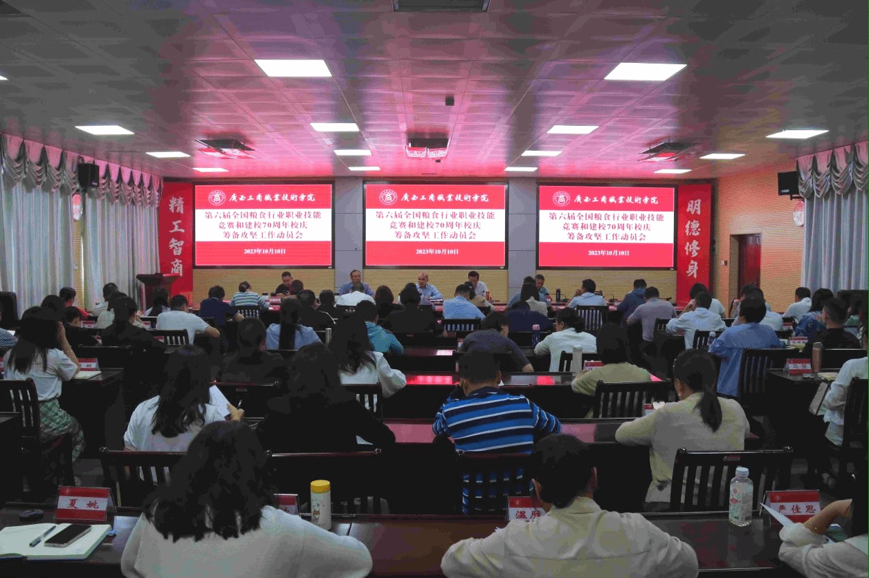 • 舉全院之力,聚全員之智。10月10日,我院召開第六屆全國糧食行業職業技能競賽和建校70周年校慶籌備攻堅工作動員會議。學院黨委書記覃武云主持會議,學院院長李維做工作動員部署。(大會現場)會上,李維院長圍繞...